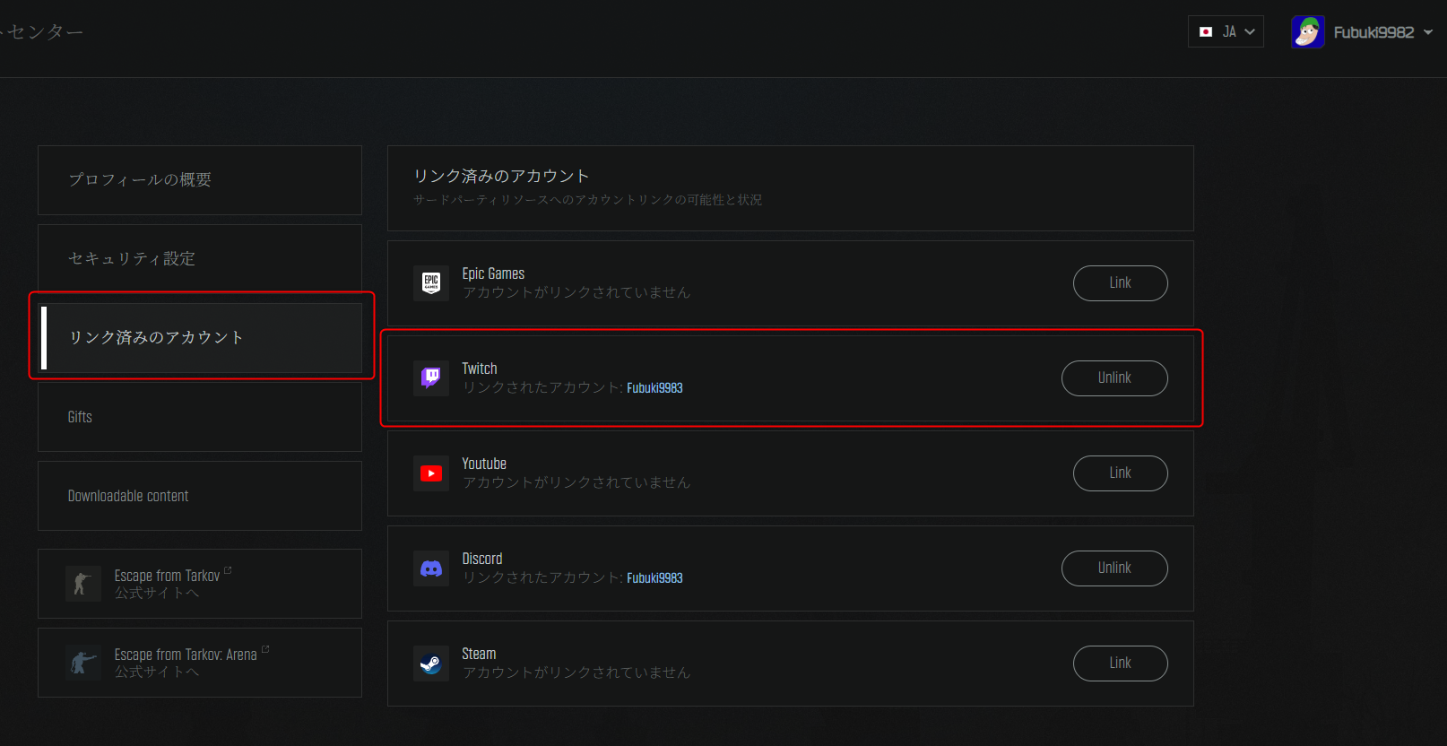 サブスクする前に必ず最初にEFT公式ページにログインしてTwitchをリンクしてください。