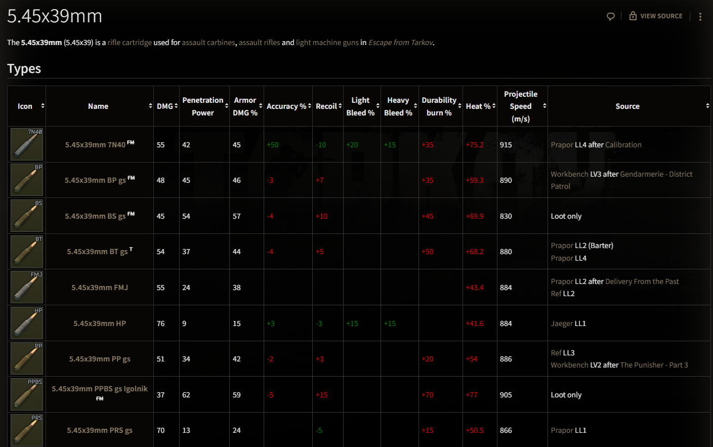 以下に英語wikiと日本語wikiの弾薬ページをそれぞれ置いておきます。
