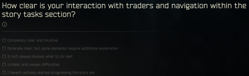 - 3.トレーダーとのやり取りやストーリータスクセクション内のナビゲーションはどれくらい明確ですか?