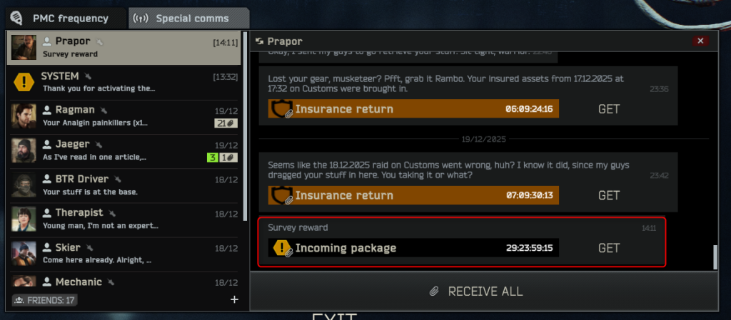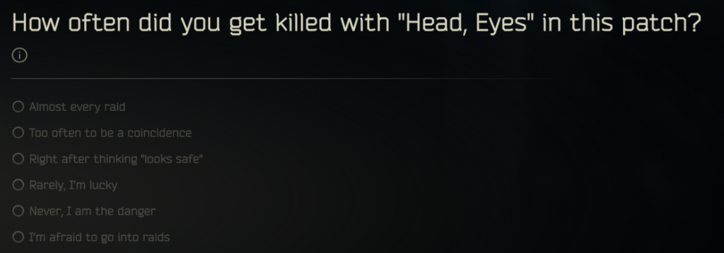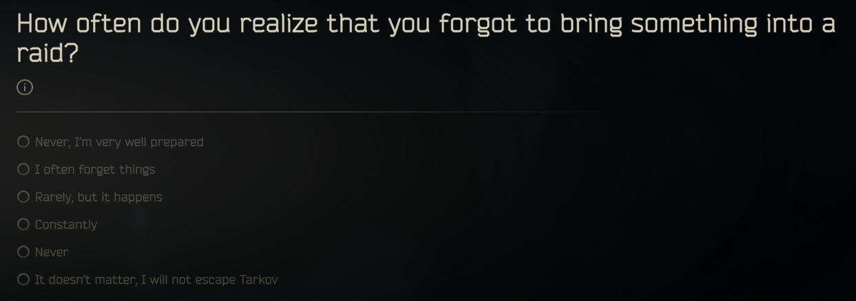 Escape from Tarkov プレイヤー向けに、新しいゲーム内アンケートが利用可能になりました。