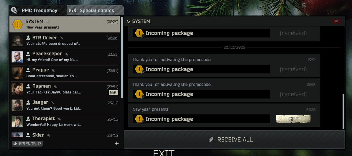 Battlestate Games アカウントセンターで新年のギフトを受け取るのを忘れないでください: