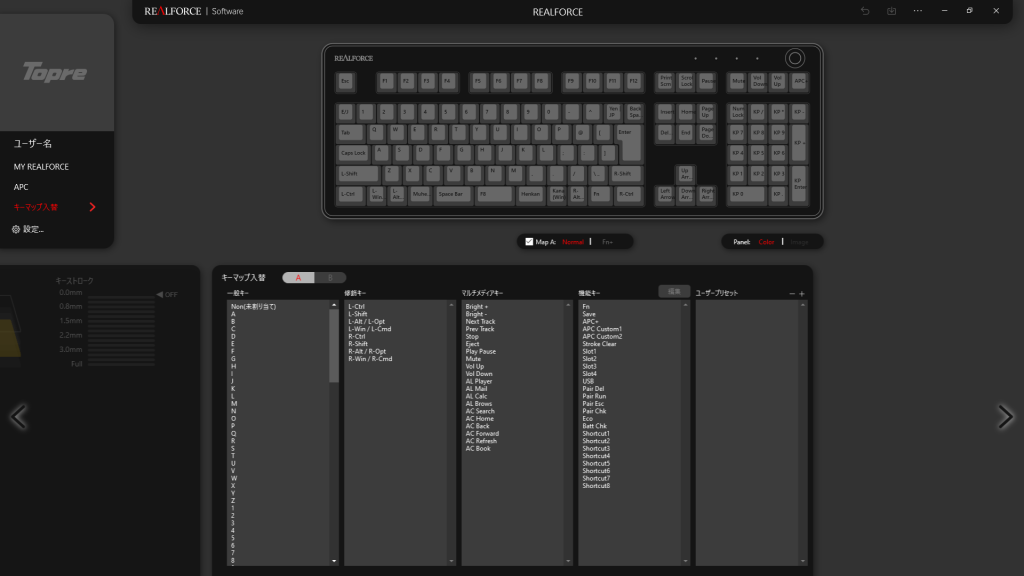 • その他専用ソフトで設定できるのキーマップ入れ替え、キーマップ2面切り替え