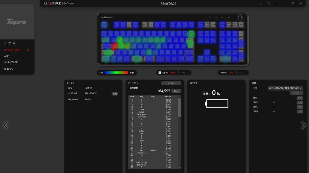 キースイッチに関しては静電容量無接点方式でほかの方が山ほどレビューをしていると思うのである程度割愛します。